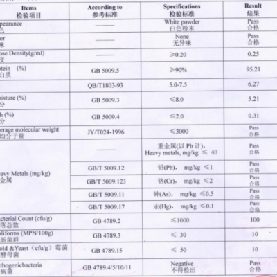 鱼胶原蛋白肽主要是从罗非鱼、鳕YU新鲜皮、鱼鳞中通过生物酶定向剪切技术提取,主要为I型胶原蛋白,产品富含19种氨基酸,分子量在600~1000D长度之间,本产品在水溶液中的热稳定性好。